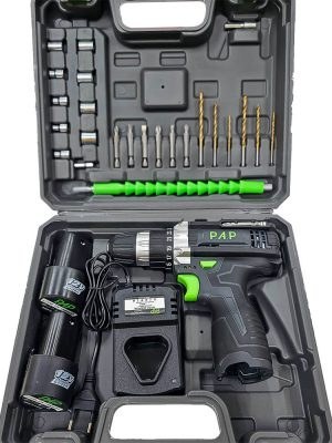 اقلام همراه: – ۲ عدد باتری ۱۲ ولت لیتیوم یون ۱۳۰۰ میلیآمپر – کارت گارانتی معتبر شرکت پی ای پی – دفترچه راهنما – شارژر رومیزی – ۶ عدد سر پیچ گوشتی دریلی (۳ عدد چهارسو و ۳ عدد دوسو) – ۹ عدد بکس سر دریلی – کیف حمل بی ام سی مقاوم